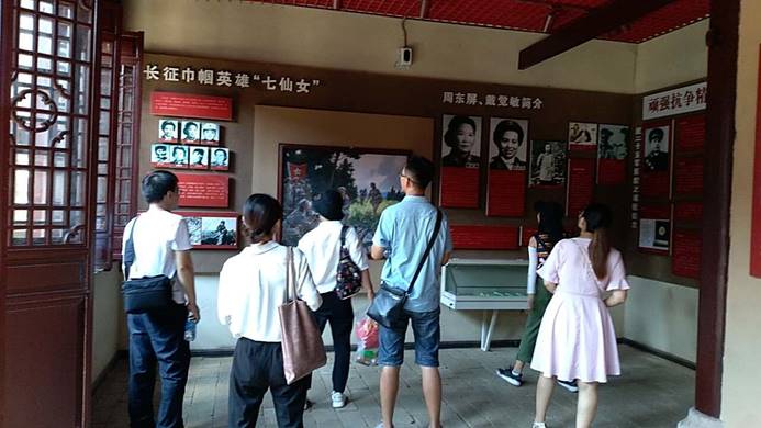 结束军部旧址的参观后,师生一行遵循着革命先辈的足迹,重走长征路,学习红军长征时的伟大精神。长征路上,同学们深深地体会到了路途的坎坷与艰辛,纷纷表示,一定要珍惜革命前辈为我们创造的今天,继承和发扬他们的长征精神,学习革命前辈的伟大精神,努力学习,报效祖国。接着来到了何氏祠旁的大银杏树下,这是一棵高约30米的大银杏树,掩映在青山翠绿中,和旁边的红军井、石墨盘等,一起见证了80多年前的一个夜晚,3000余名红军指战员聚集于此,高举中国工农红军北上抗日第二先遣队的旗帜,正式拉开了长征的序幕。在军部医院旧址,学生们知道了在物资紧缺的战争年代,红军自制中药药品,开展战地救死扶伤,极大地为红军伤员挽救了生命和减轻了病痛。红军医院不仅治疗伤病员,还为当地百姓看病,深受当地百姓赞誉。