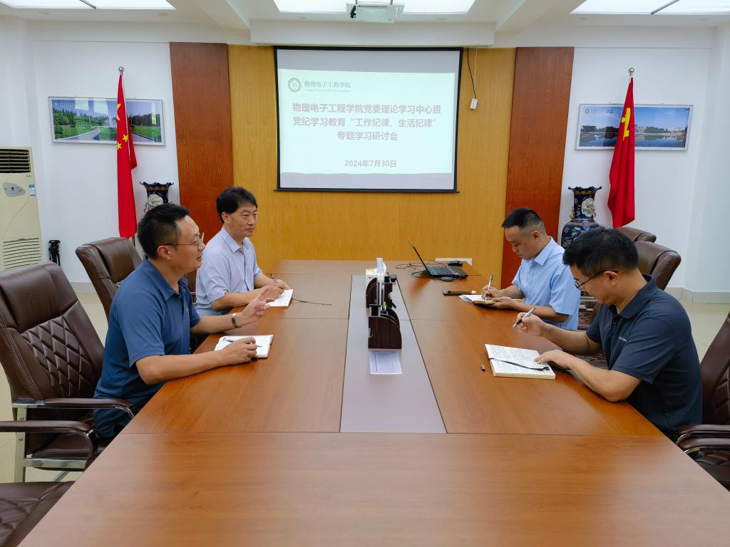 7月30日,学院党委理论学习中心组召开会议,专题学习研讨党的工作纪律、生活纪律。学院党委理论学习中心组成员参加学习研讨。学习研讨由学院党委书记方明科主持。