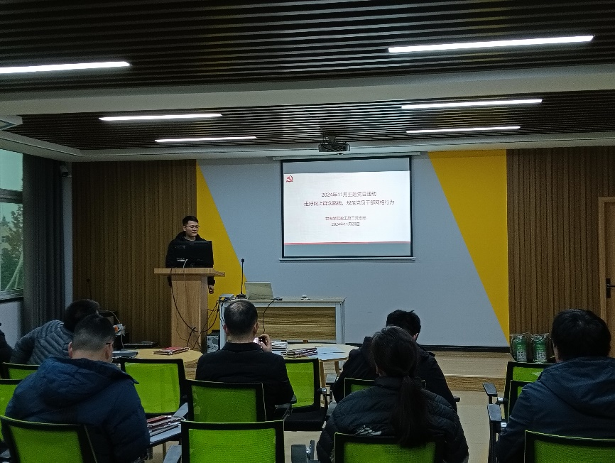 11月28日,学院教工第二党支部在理科楼北楼507开展了“规范党员网络行为”主题党日活动,活动由支部书记陈瑞主持,活动采取集中学习、观看视频课程和研讨交流相结合的形式有序开展。会上,陈瑞带领支部党员集中学习了《中国共产党党员网络行为规定》及相关案例,阐述了党员遵守网络行为规范的重要性和必要性,引导支部全体党员努力提高政治站位,自觉做良好网络生态的引领者,网络正能量的传播者和网络秩序的维护者。随后观看了“走好网上群众路线,规范党员干部网络行为”的视频课程并开展了深入的研讨交流,支部党员结合工作实际踊跃发言,分享学习心得与体会,支部联系领导副院长刘墨林表示,支部党员同志应进一步认识规范网络行为的重要性,以本次学习为契机,积极践行网上群众路线,牢记党员教师身份,密切联系群众,倾听学生心声,积极践行社会主义核心价值观,传播正能量。
