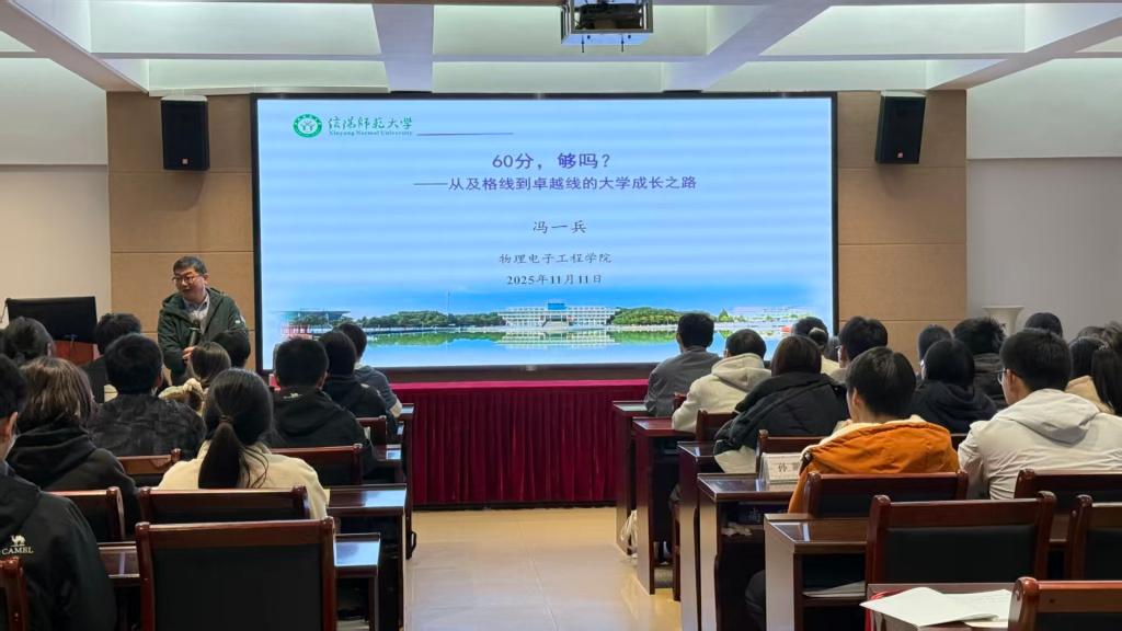 为深化新生专业认知,强化师范生素养培育,11月11日,我院在理科楼402会议室举办新生专业成长教育讲座。本次讲座特邀冯一兵老师主讲,2025级物理学二班全体地方优师计划学生参加。