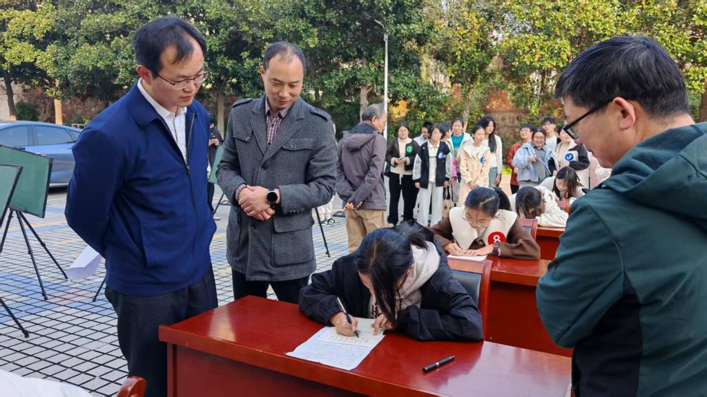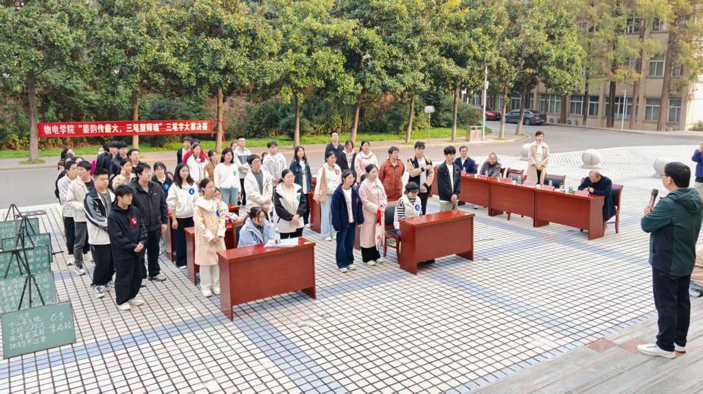 11月16日,我院在理科楼前举办“墨韵传薪火,三笔塑师魂”三笔字大赛决赛。学院党委副书记张丽,副院长宋宣玉,冯一兵、陈新武、李炳中、孙金土等领导老师亲临现场并担任评委。