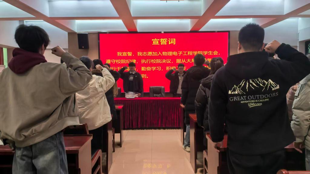 随后,新任学生会主席阮俊凯带领全体学生干部进行庄严宣誓,铮铮誓言彰显了学生干部履职尽责、服务同学的坚定决心。宣誓结束后,主席团成员围绕新学期工作重点展开详细部署,明确各部门工作任务与发展方向,提出将坚守服务初心,深化“奉献意识、执行意识、创新意识”三位一体工作理念,全面提升学生工作质效,为学院发展贡献青春力量。会议最后,与会人员在图书馆前合影留念。