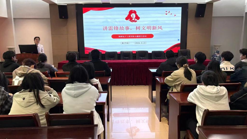 3月21日,我院在理科楼402举办“讲雷锋故事,树文明新风”主题团日活动。2024级、2025级学生干部积极参加,现场气氛热烈。