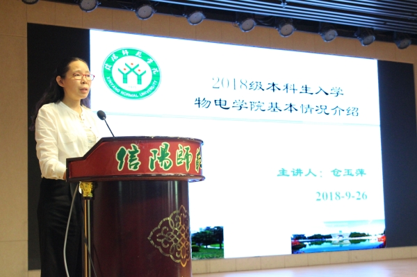 仓玉萍为学子们作专业介绍与学业指导。她结合精心制作的幻灯片详细讲述我院的发展史,并从专业基本情况、师资力量、实验室条件、课外实践、考研情况五个方面做详细阐释,充分展现了我院先进的实验室条件、雄厚的师资力量与优良的学风建设。同时,仓玉萍简要介绍我院各个专业最新培养方案与要求,提醒在场学子结合自身专业特点,选择不同侧重点,顺利完成自身专业学习。(物电学院张志月 王沛/供稿)