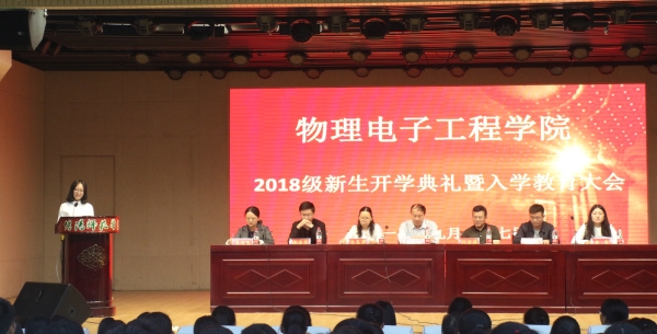 金秋送爽苍梧情,丹桂飘香开学时。9月27日上午,williamhill中国于理科楼报告厅成功举办2018级新生开学典礼暨入学教育大会,我院党委书记柳士刚,副院长仓玉萍、孙宜海,教师代表刘墨林,2018级新生辅导员张康华、黄钰莹、赵雪等领导老师莅临现场,与我院280余名学子共同参与此次会议。会议由黄钰莹主持。