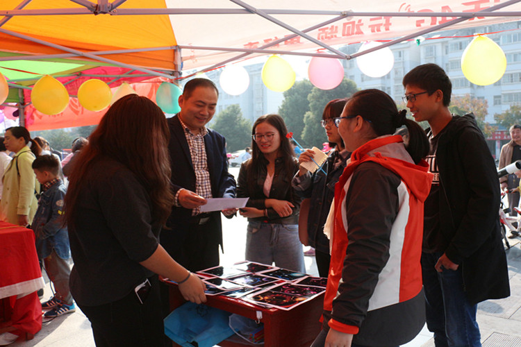本次活动以“青春献礼十九大,不忘初心跟党走”为主题,集棋艺比拼,亲情再升温、义务维修家电、趣味羽毛球比赛、防骗宣讲、奇幻天文观测等形式多样的活动为一体,构成茗阳阁广场上一道亮丽的风景线。前期准备阶段,各社团负责人提前到达指定位置,进行搭帐篷、扯条幅、挂装饰品等一系列准备活动。活动一开始,吸引了众多社区居民前来咨询、围观,现场人头攒动,气氛异常热烈。电子信息技术协会工作人员为当地市民义务维修家电,在便利市民的同时增强动手实践能力,期间,社团成员对当地居民进行用电知识义务宣传讲解,获得了广大市民的一致好评。防诈骗宣讲活动现场,我院学子组织居民认真填写问卷调查表,发放宣传册为其普及关于企业传销诈骗与企业投资诈骗的常识,并重点为当地老人宣讲企业推销保健品的手段,增强居民安全防范意识。星空物语天文观测协会工作人员携带望远镜,组织调试并为市民展示星空之美。众多家长和孩子聚集在爱心学校社团帐篷中,在学子们的引导下做“你画我猜”、“趣味橡皮泥”等亲情默契大比拼游戏,极大地提升家长和孩子之间的默契程度,使亲情再升温。