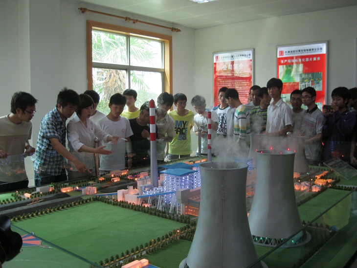 该集团本届开放日活动以“精彩电力,文化大唐”为主题,我院参加本次生产见习的学生共100人次,覆盖了我院11级电子类的专业和班级,我院参观团受到了大唐集团的亲切接待。同学们在解说员的带领下,观看了大唐公司的企业宣传板,了解了大唐公司的企业背景、企业文化和所获荣誉。随后同学们在企业统一配发安全帽后进入发电厂区分别对该集团的汽机房、锅炉房、集控中心、冷却塔等厂区进行了实体参观。两位解说员就该集团的企业文化、技术特点、岗位需求、核心竞争力等几点给大家做了专门介绍。在参观过程中,解说员与同学们积极互动,同学们不时发问,问题主要集中在企业在电力发展过程中需要哪方面的技术人才、最看重人才哪个方面及企业在技术岗位的发展路线等方面,解说员对同学们的提问进行了耐心的解答。近两个小时的生产见习在同学们的欢声笑语中缓缓落下帷幕。