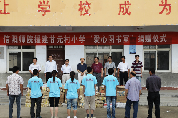 为引导广大青年学子深入学习科学发展观,贯彻落实胡锦涛总书记在纪念建团90周年大会上的重要讲话精神。7月2日上午,我院来到甘元村小学开展了援建“爱心图书室”捐赠活动。我校党委宣传部部长单刚、副部长李晓,党委宣传科科长李东晓、我院团总支老师张康华、甘元村村长刘明喜及20余名志愿者参与了捐赠仪式。