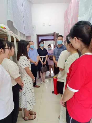 9月16日,我院党委书记刘百超、院长涂友超、党委副书记张丽及全体辅导员一行到学生公寓看望假期留校考研的学生,并为学生们带去慰问品。