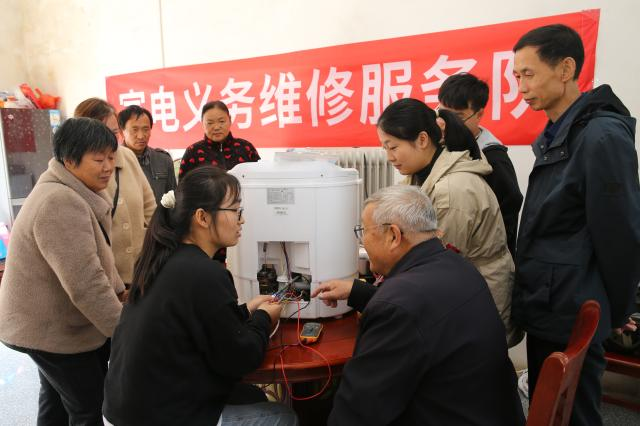 一大早,服务队来到万营村,迅速支起工作台,便开始紧张的义务维修工作。活动现场,前来维修的村民络绎不绝,维修的家电也是多种多样,小到热水壶,大到洗衣机,服务队成员认真仔细检查电器故障原因,对症下药,保证了维修的效率与质量。部分村民身体有恙,不方便将电器搬运到维修现场,我院志愿者便到居民家里上门维修,积极服务,认真做好登记。在开展义务维修的同时,志愿者们也不忘告诉大家如何正确使用电器及维护电器的知识,志愿者们热情的服务态度、专业的维修技术赢得了村民高度的认可与赞扬。