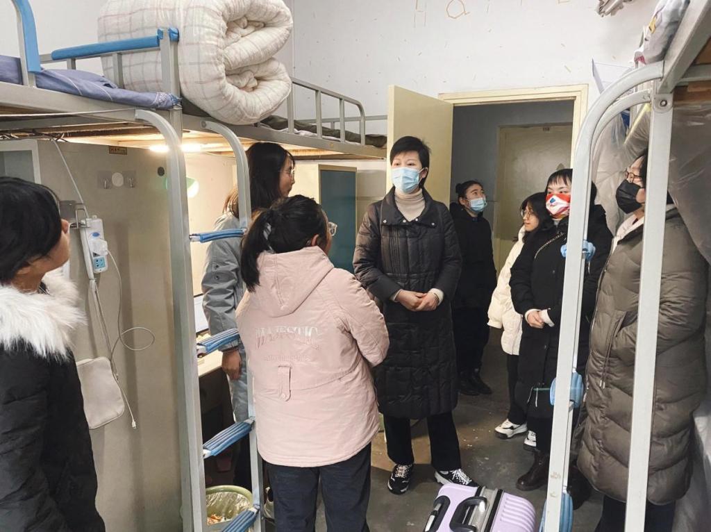 为深入了解同学们返校后的思想动态和生活情况。2月18日,我院党委副书记张丽带领全体辅导员深入学生宿舍看望返校学生。