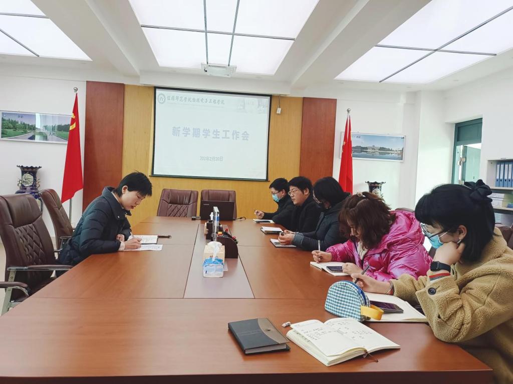 2月20日上午,物电学院在理科楼911会议室召开新学期学生工作会,总结上半年工作成绩,部署下半年重点工作。会议由党委副书记张丽主持,全体辅导员参加。
