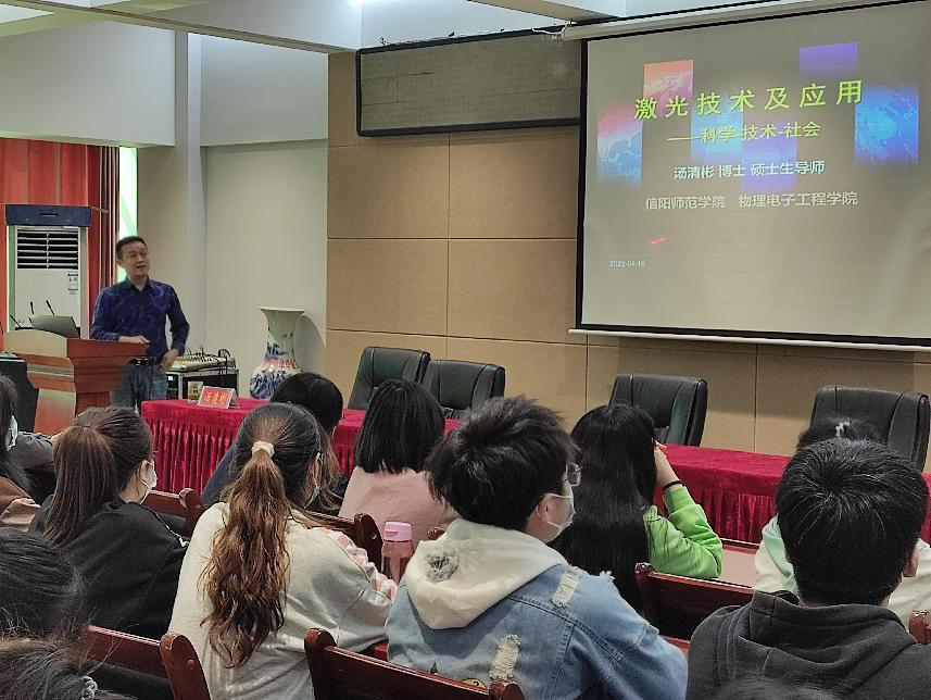 4月19日下午,我院格致讲坛系列讲座之“激光技术及应用”在理科楼四楼连廊会议室开讲,学院诚邀汤清彬副院长为主讲嘉宾。本次讲座由团委老师牛文娟主持,2020级、2021级材料物理专业和其他专业的部分学生共同聆听此次讲座。
