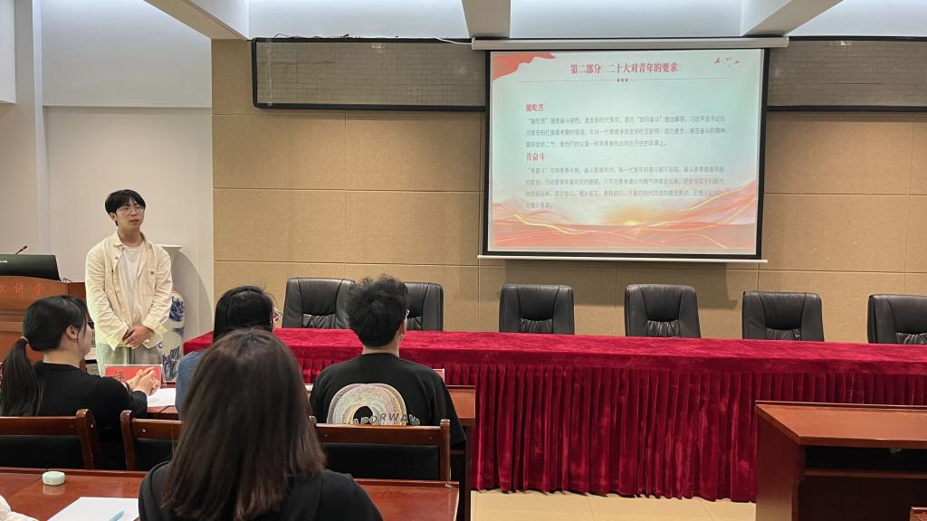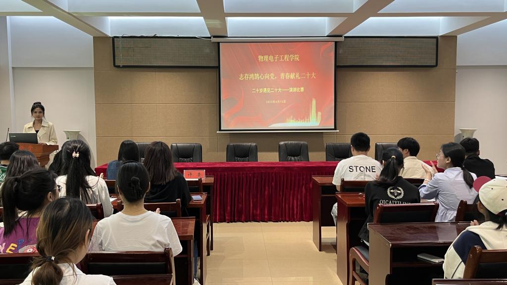 为深入学习贯彻党的二十大精神,引导同学们自觉践行社会主义核心价值观。4月15日,我院于理科楼402会议室举行以“志存鸿鹄心向党,青春献礼二十大”为主题的二十岁遇见党的二十大演讲比赛。此次比赛由团委老师牛文娟,学生会主席团成员担任评委,张佳琪主持。