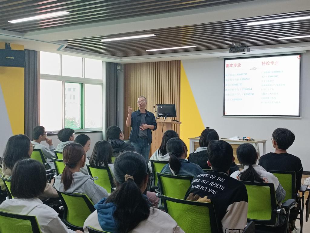 为提高新生专业素养,增强专业认知。10月10日,我院在507会议室举行专业思想教育,此次讲座由郭建涛老师主讲,2023级电子科学与技术班全体同学参与。