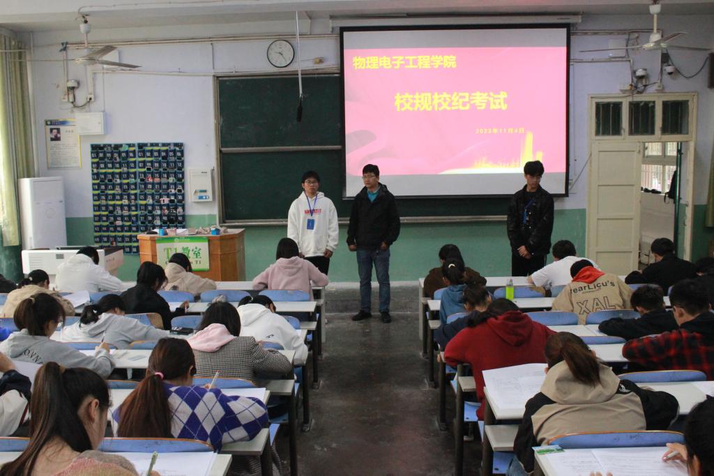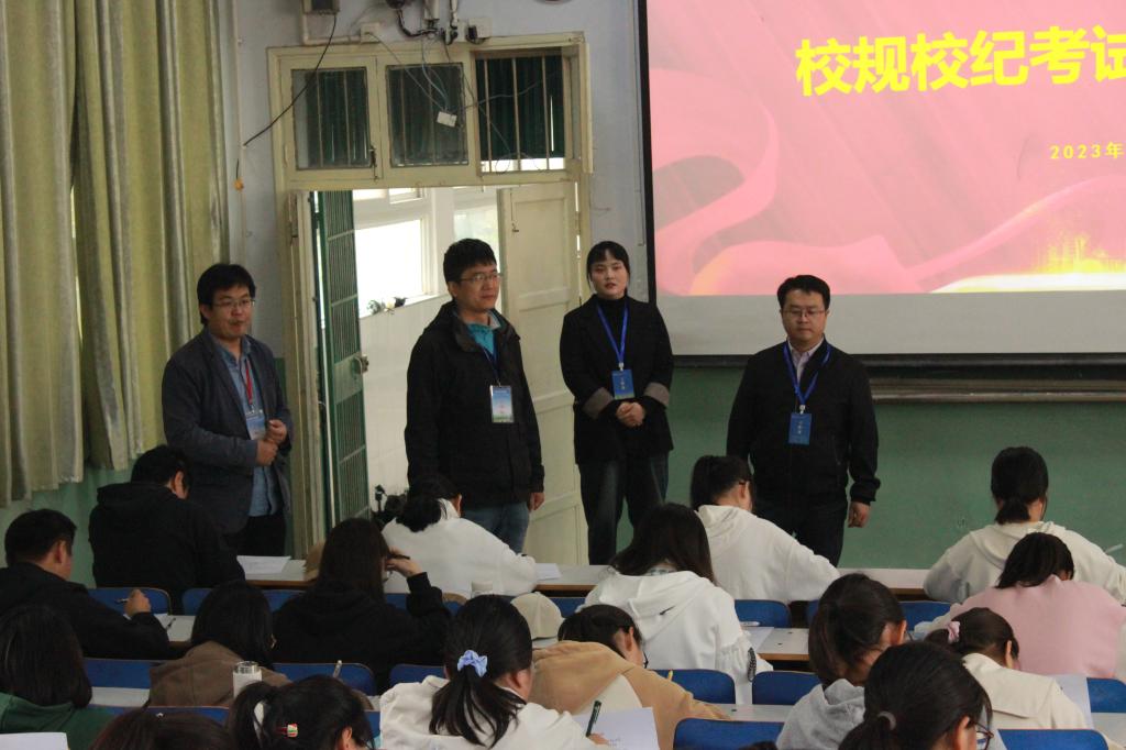 为规范2023级新生管理行为,鼓励和支持学生实行自我管理、自我服务、自我教育和自我监督。11月4日,我院在教二楼、教三楼组织开展2023级学生校规校纪考试,213名新生全部参加。