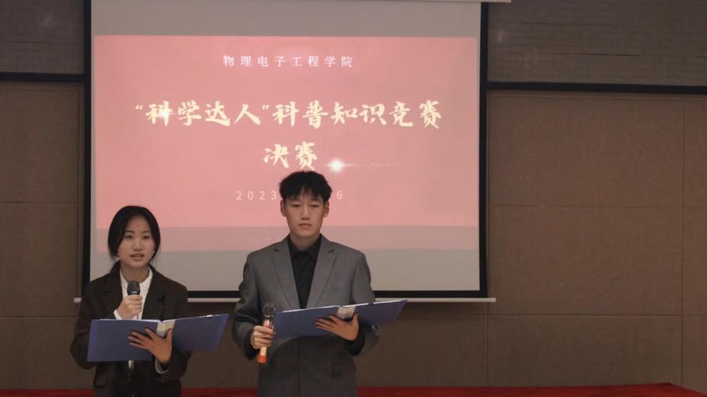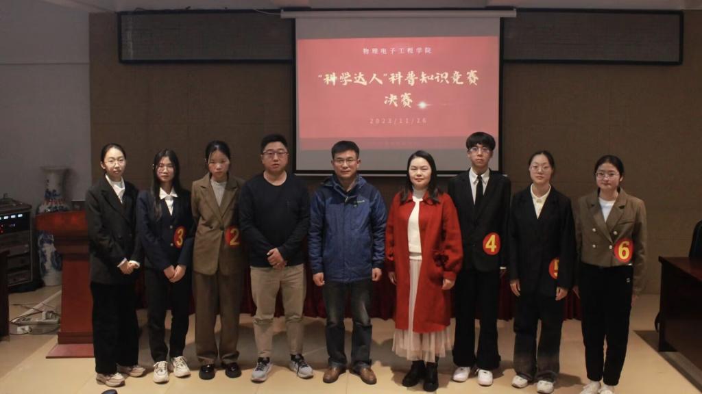 为全面提升大学生的科学知识水平,营造“学科学、讲科学、用科学”的学习氛围。11月26日,我院于在理科楼402举办“科学达人”科普知识比赛决赛。学院副院长刘墨林、科协办公室主任陈红梅、辅导员李方涛、牛文娟担任评委。活动由王艺贤、刘家昊主持。2023级学生代表共同参加。