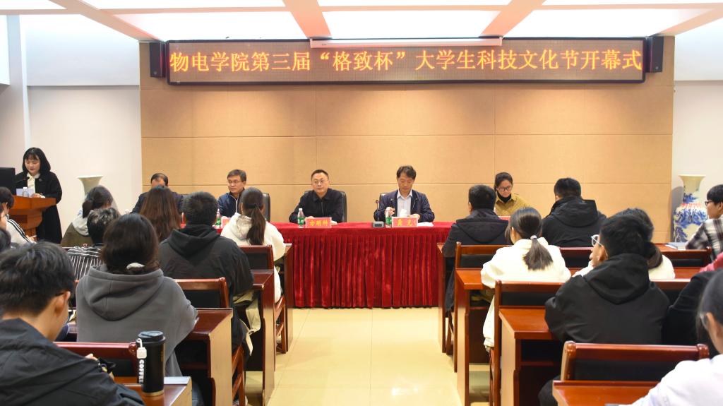 11月14日,我院第三届“格致杯”大学生科技文化节开幕式在理科楼402举行。党委书记方明科,院长龚克,副院长刘墨林、陆阳、宋宣玉出席开幕式,全体辅导员、班主任以及各年级学生代表共同参加。