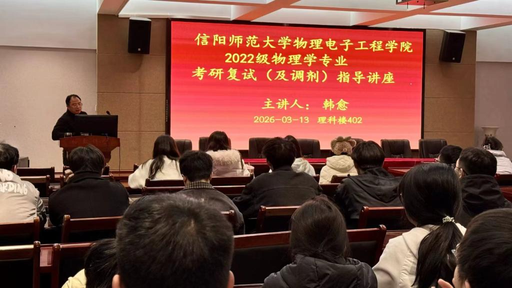 为切实助力我院考研学子高效备战复试,科学规划调剂,3月13日下午,我院于理科楼402会议室举办考研复试与调剂专题指导讲座。本次讲座特邀韩愈老师主讲,2022级考研学生参加。
