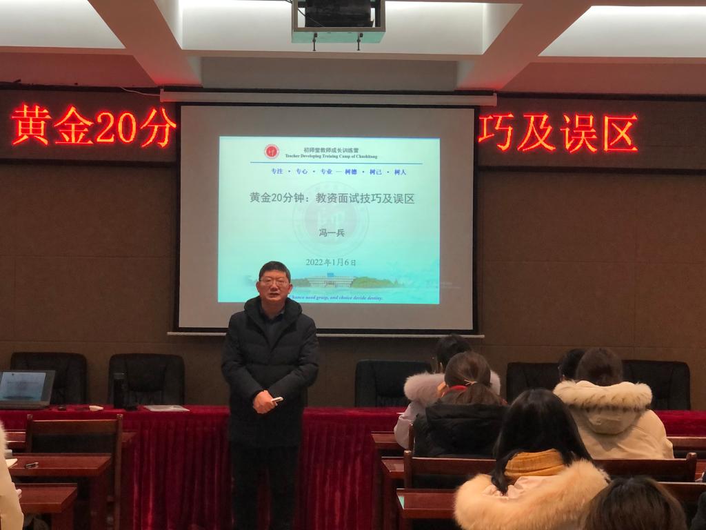 为进一步加强我院留校学生疫情期间的日常管理和提高教师资格证面试通过率。1月6日下午3点,我院在理科楼四楼会议室举办教师资格证面试指导专题讲座。邀请我院培训专家冯一兵老师结合专业特点进行有针对性的面试指导,学院党委副书记张丽,专职辅导员以及进入教资面试的学生参加讲座。会议由张丽主持,并在会前对留校学生再次强调留校期间防疫规定和学生返家途中相关安全问题。
