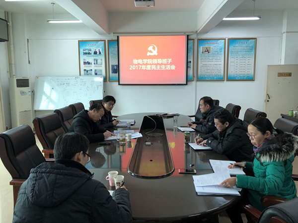 根据《关于开好2017年度县以上党和国家机关党员干部民主生活会的通知》文件精神和学校要求,1月26日,物电学院领导班子以“认真学习领会习近平新时代中国特色社会主义思想,坚定维护以习近平同志为核心的党中央权威和集中统一领导,全面贯彻落实党的十九大各项决策部署”为主题,召开了领导班子2017年度民主生活会。学校党委办公室副主任房加帅、科长丁其科出席并全程指导了民主生活会,学院全体领导班子成员参加会议。会议由学院党委书记柳士刚主持。