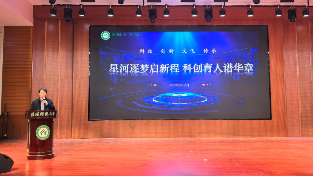 成果展演环节内容丰富、亮点纷呈,全方位展现了物电学子文理兼修、勇于创新的综合素养。书法歌舞表演笔墨含香、舞姿灵动,尽显深厚人文底蕴;《智巡蓝影》等科技项目及实用小发明的现场演示,将奇思妙想转化为服务生活的实际成果,彰显了科技创新的实践价值;师范生技能大赛优秀选手的现场模拟授课,生动诠释了未来教育工作者的专业风采与育人初心。分享环节中,参赛学生代表范宇丹深情讲述了“在一次次打磨中突破自我”的备赛历程,传递出不懈奋斗的青春力量;全国大学生物理实验竞赛一等奖获得者姚婧怡分享了学科竞赛背后的坚守与成长,以自身经历鼓励同学们“以兴趣为引,以毅力为基,在科研路上笃定前行”,引发在场学子的强烈共鸣。