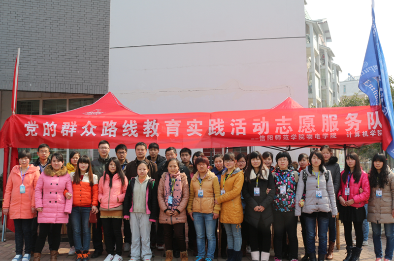 为响应关于积极开展群众路线实践教育活动的号召,深入贯彻落实我校《信阳师范学院党的群众路线教育实践活动实施方案》和严格执行我院《物电学院党的群众路线教育实践活动实施方案》的具体要求,3月1日-3月25日,学院结合专业特色,以学生党员为主体,依托学院爱心学校、电子信息技术协会两个社团,组成“党的群众路线教育实践志愿服务队”,集中开展以“学习雷锋精神、践行服务宗旨”为主题的党员志愿服务活动,活动内容包含开展辅导留守儿童、关爱孤寡老人和义务维修志愿服务等几个方面。