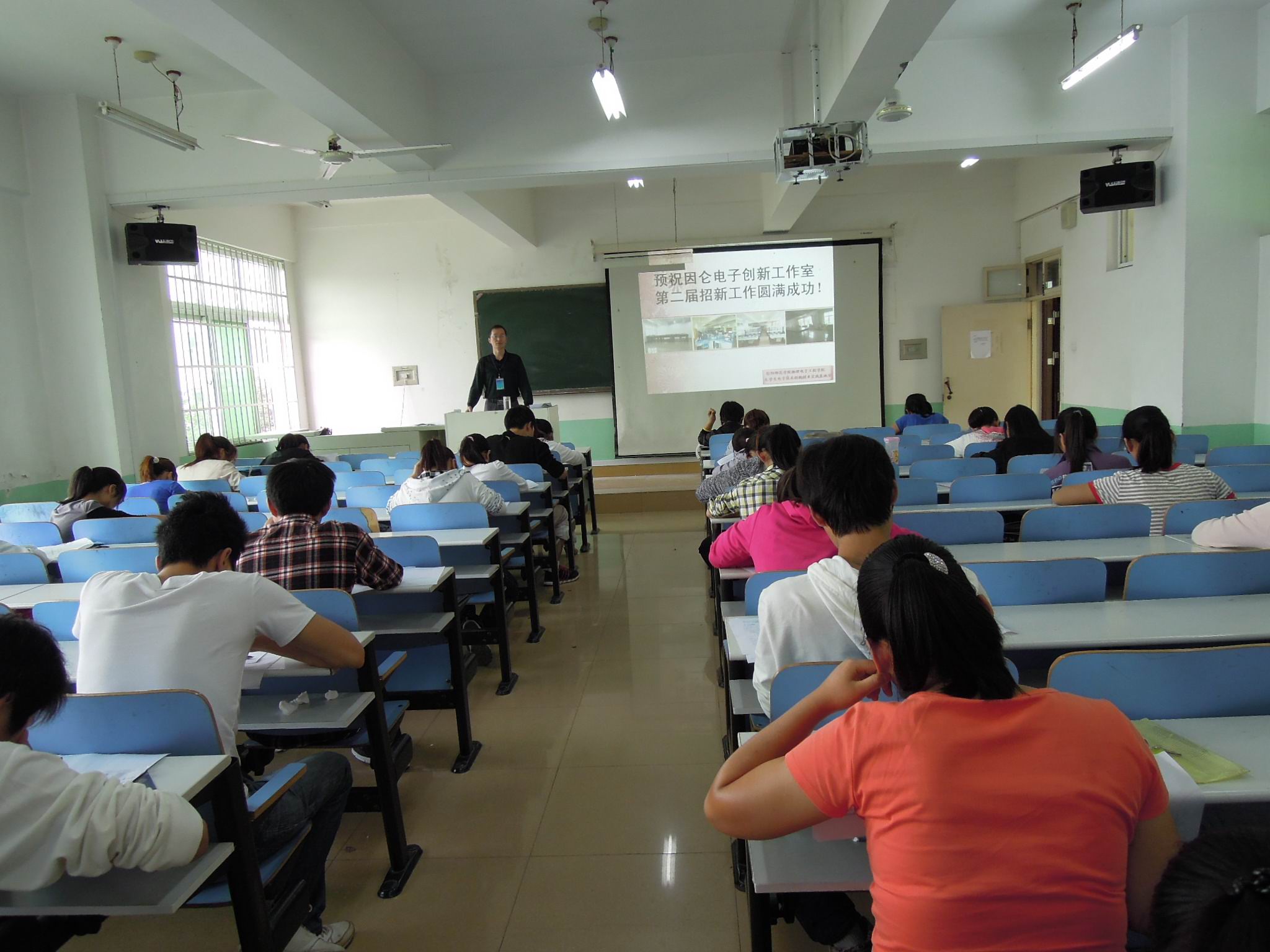 2012年9月18日下午,第二届因仑电子创新工作室的招新工作全面启动。首先,在信阳市机电平台的相关老师组织下同学们进行了两个小时的笔试。随后,我机电平台的老师们又对经过海选胜出的同学们开展了较为严格的面试,最终择优录取了42名同学。第二届因仑电子创新工作室招新工作圆满成功。