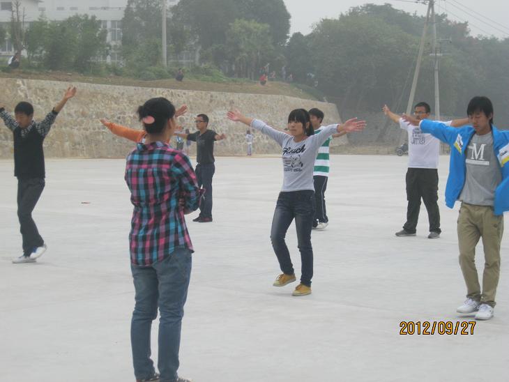展青春活力,显魅力风采。为丰富校园文化生活,提高同学们的身体素质,我校决定于10月底举行广播体操比赛,我院领导组织学生积极备战广播体操比赛。