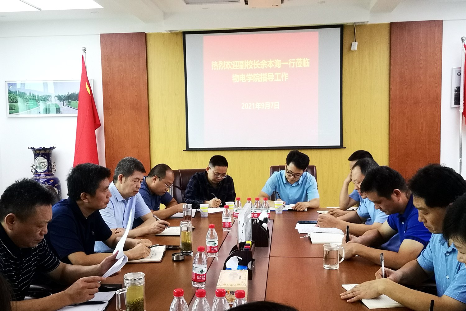 调研期间,余本海仔细询问了新学期我院教学、科研等工作情况及存在的困难与问题。院长涂友超从教学和科研两个方面作了详细汇报。在教学方面,汇报了物理学师范专业认证、物理学一流专业建设、国家一流课程申报、学科竞赛活动、新工科协同育人及特色平台建设、新学期线上教学等工作进展与成效,以及在课程思政、教学团队建设等方面的措施与相关问题;在科研方面,汇报了我院国家自然科学基金项目、河南省联合基金重点项目、河南省科学技术奖、科研团队与平台建设等方面的工作成绩及存在的问题。