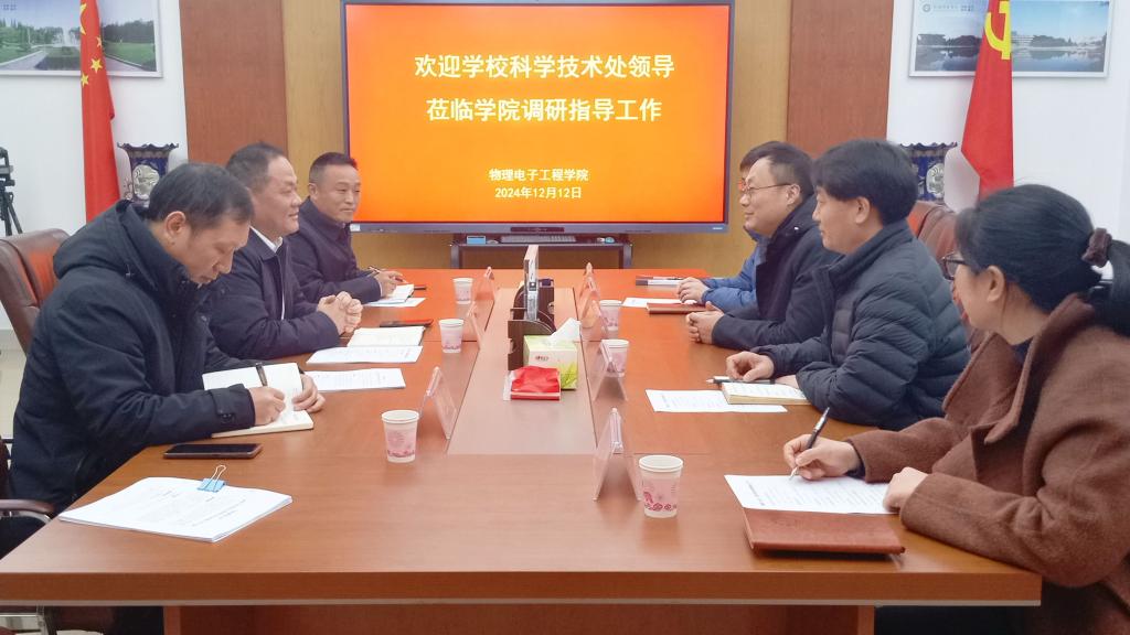12月12日,校科学技术处处长牛继强、副处长汤清彬、平台与成果管理科科长李胜周一行莅临我学院就省重点实验室工作和2025年国家自然科学基金项目申报开展调研工作。院党委书记方明科、院长龚克、副院长刘墨林、副院长陆阳参加了本次会议。