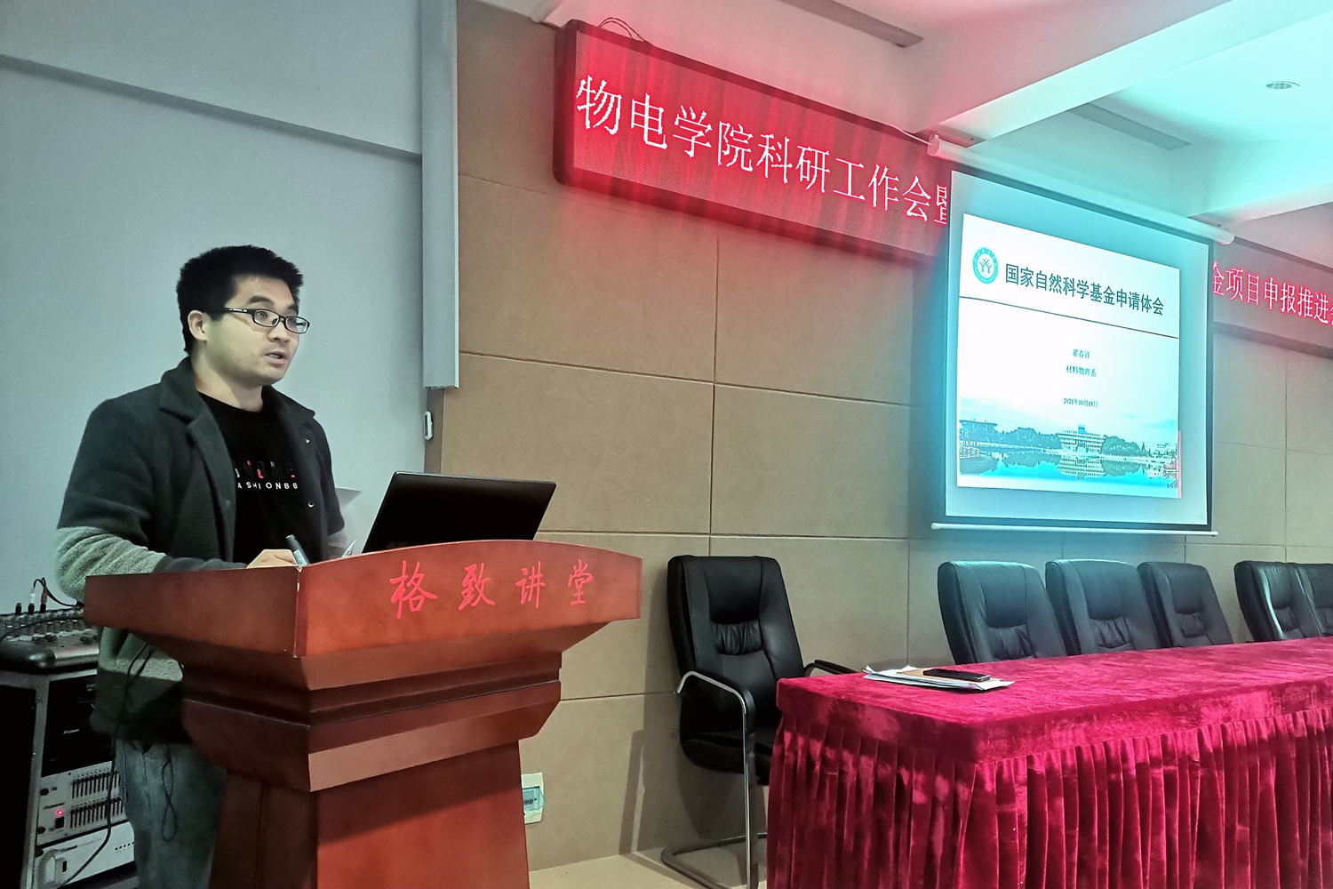 10月19日下午,我院在理科楼402会议室召开了2022年国家自然科学基金项目申报推进会。院党委书记刘百超、副书记张丽、副院长汤清彬出席会议,拟申报2022年国家自然科学基金项目的教师参加了推进会。会议由副院长龚克主持。